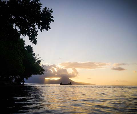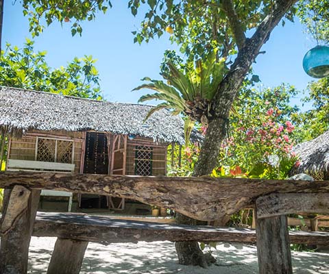 Rah Beach Bungalow is on an Island of its own near Motalava that can be easily accessed by walking across the lagoon or by a short canoe ride. After a short crossing of the lagoon, you will be welcomed by Parton and his family.
